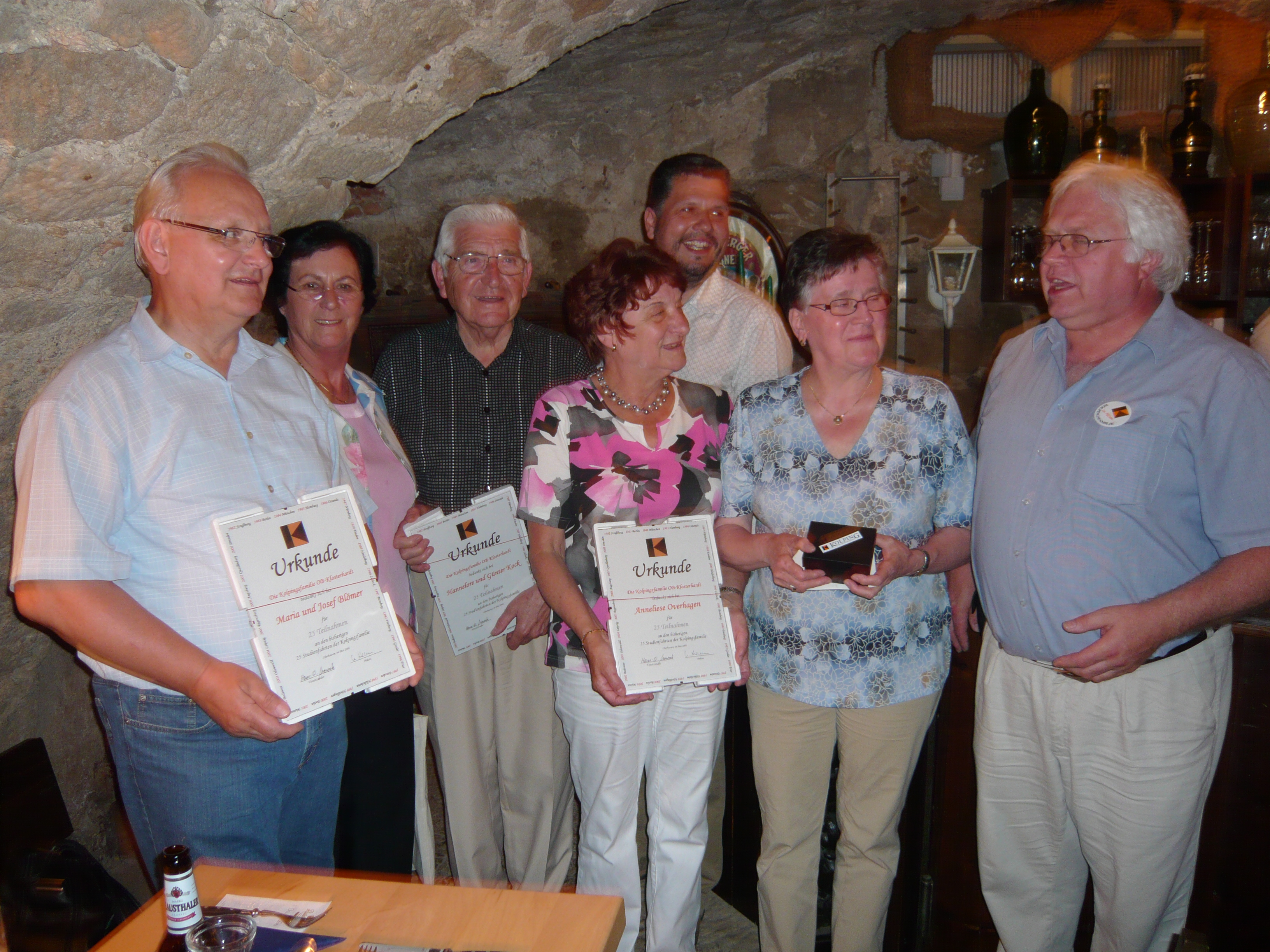 Höhepunkte im Jahr 2008 waren sicherlich der Wandertag zum Backhaus von Winfried Kentgens, die Teilnahme an Veranstaltungen zum 50-jährigen Bestehen des Diözesanverbandes und die 25. Studienfahrt unserer Kolpingsfamilie. Die Fahrt führte in diesem Jahr nach Dresden. Vor Ort wurden Maria und Josef Blömer, Hannelore und Günter Kock sowie Anneliese Overhagen vom überraschend aus Oberhausen angereisten 2. Vorsitzenden, Andreas Metzen, für die Teilnahme an allen 25 Studienfahrten geehrt.